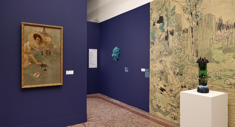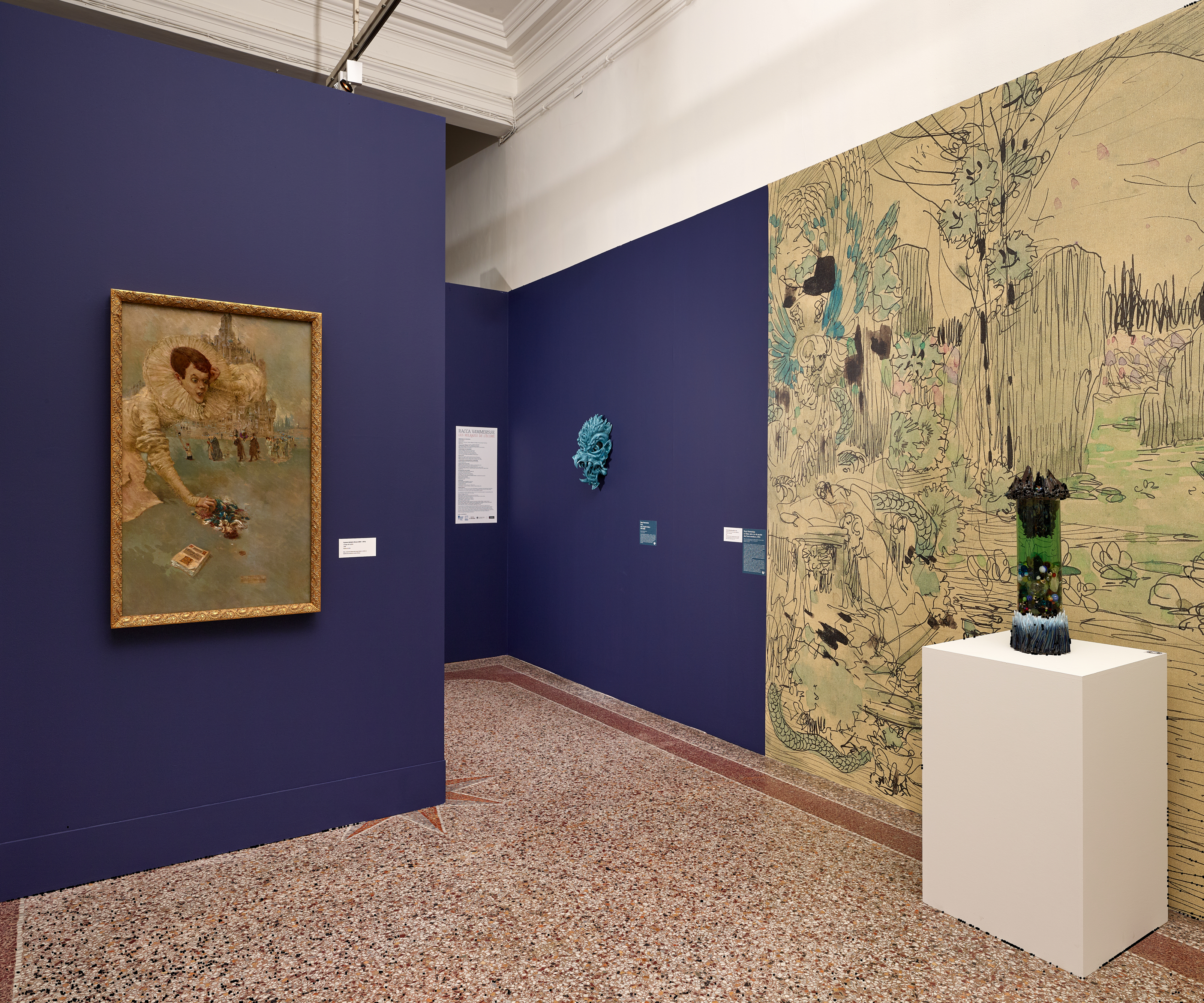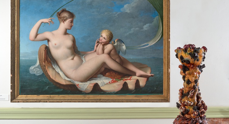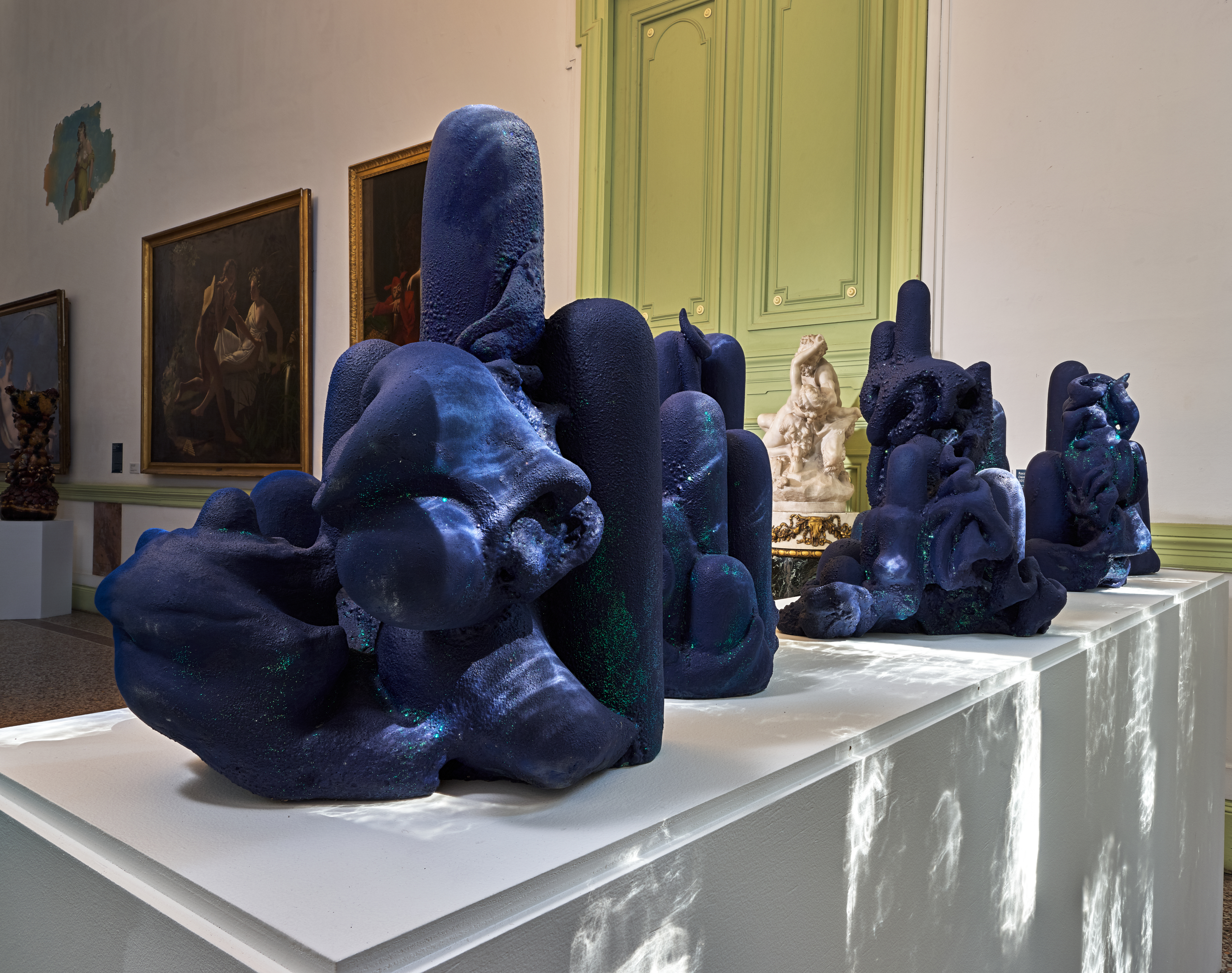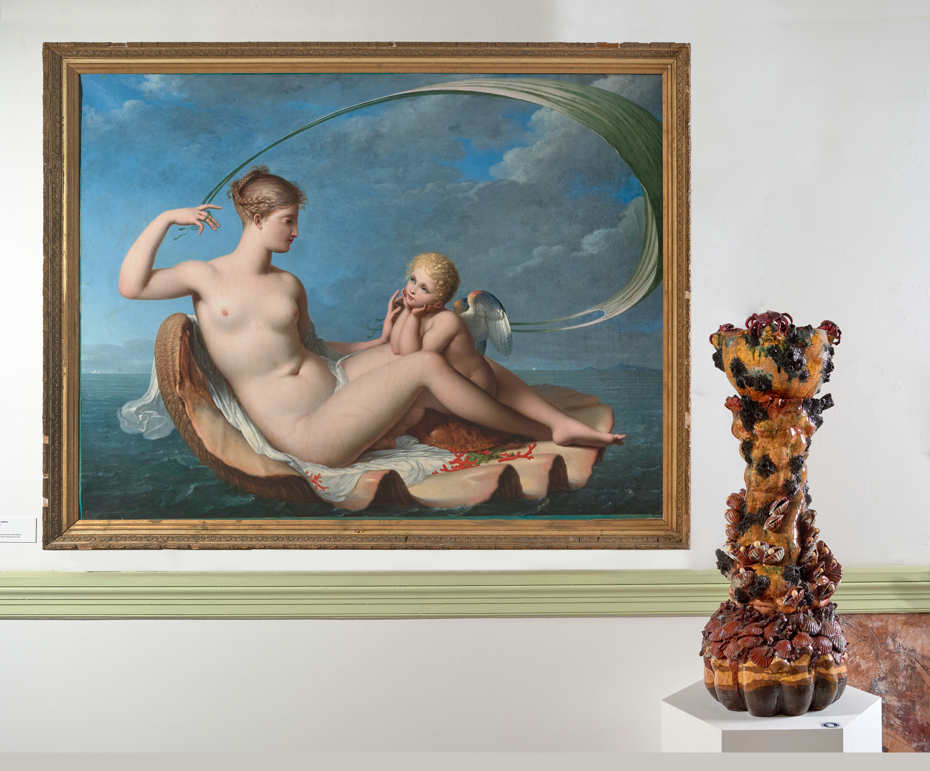 Dans le cadre du programme de recherche et création MOINES KAOLIN du Logoscope et avec une iconographie largement puisée dans les fonds marins, JP Racca Vammerisse déploie des séries de pièces en céramique empreintes d’étrangeté. Perles, coquillages, tentacules s’agrippent à de grands vases évoquant la production de Bernard Palissy à la Renaissance, la traditionnelle céramique ornementale de Vallauris au XIXe siècle ou constituent de sculpturaux biotopes précieux et inquiétants. À l’assaut des collections du musée des Beaux-Arts, ces pièces s’insinuent dans les espaces du palais : monumentalité et sensualité résonnent avec les collections anciennes et rejouent avec théâtralité le faste originel de la villa Belle-Epoque qui abrite le musée.